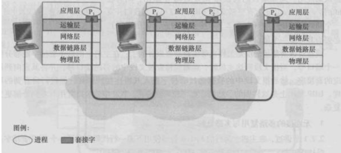 上文中提到,运输层将网络层的主机间交付扩展到了应用程序的进程间交付,这一过程为多路复用和多路分解。在目的主机,运输层从紧邻其下的网络层接收报文段,运输层负责将报文段中的数据交付给主机上适当的进程。一个进程有一个或多个套接字(socket),它是从网络向进程传递数据或是向网络传递数据的门户。如图一所示,运输层其实并不是将数据直接交给某个进程,而是交付给了一个套接字,每个套接字有唯一的标识符。