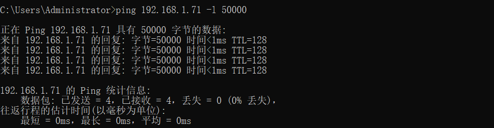 - -l参数可以设定ping包的大小(单位为字节;可用于简单测试通信质量)