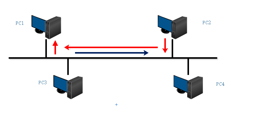就是PC1要发送数据给PC2,但它不知道PC2的MAC地址(即ARP没有PC2的MAC),所以它向其他3个PC机广播,其他的3个主机收到PC1的请求消息,然后它们的ARP会记录PC1的MAC同时查看自己是否是PC1请求的目的MAC,PC2就会通过单播向PC1回复应答,PC3、PC4不会回复。