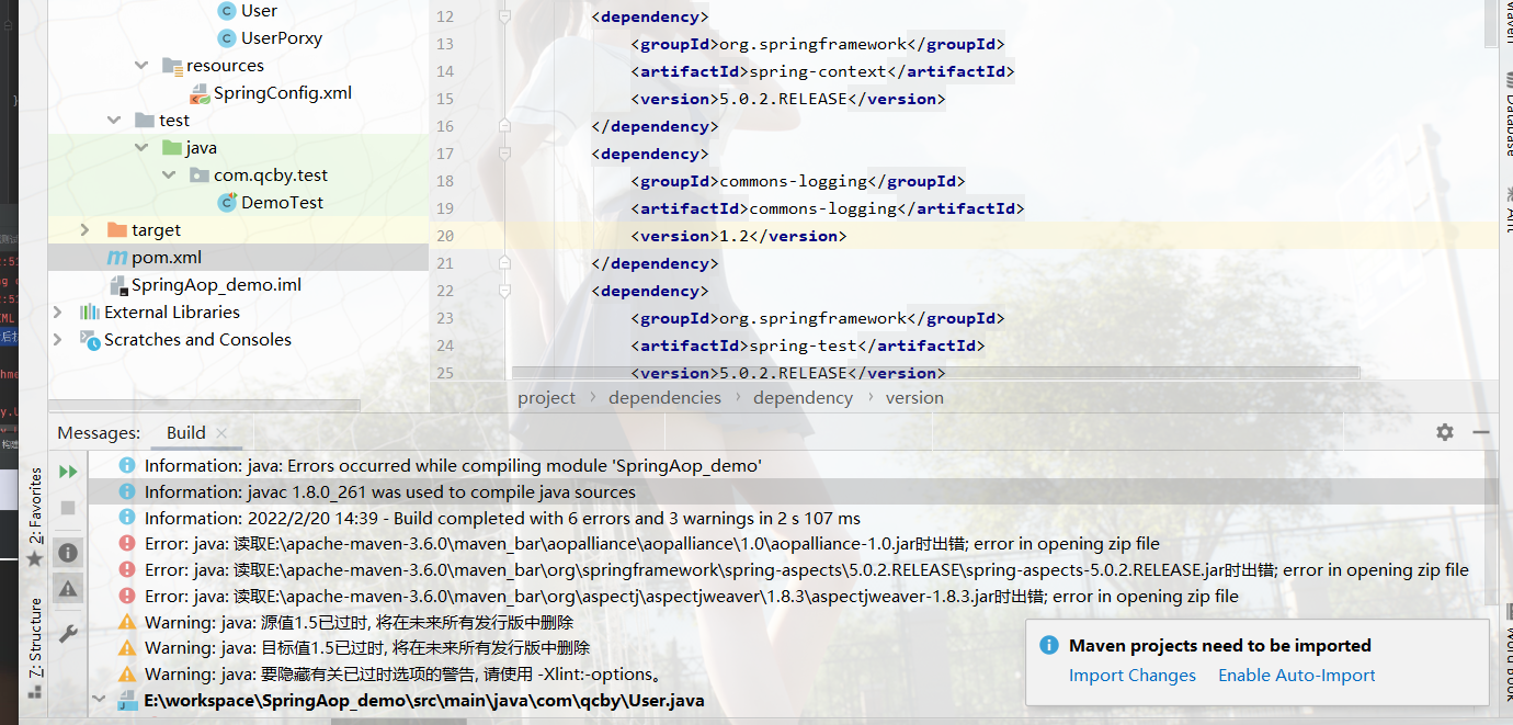 在idea中新建了maven项目,并导入了pom.xml,相关配置。运行时候出现以下错误