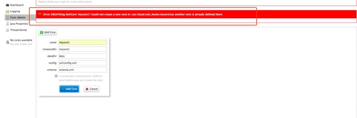 添加完成之后它提示已经存在,Core with name 'product' already exists. 是因为之前肯定已创建过