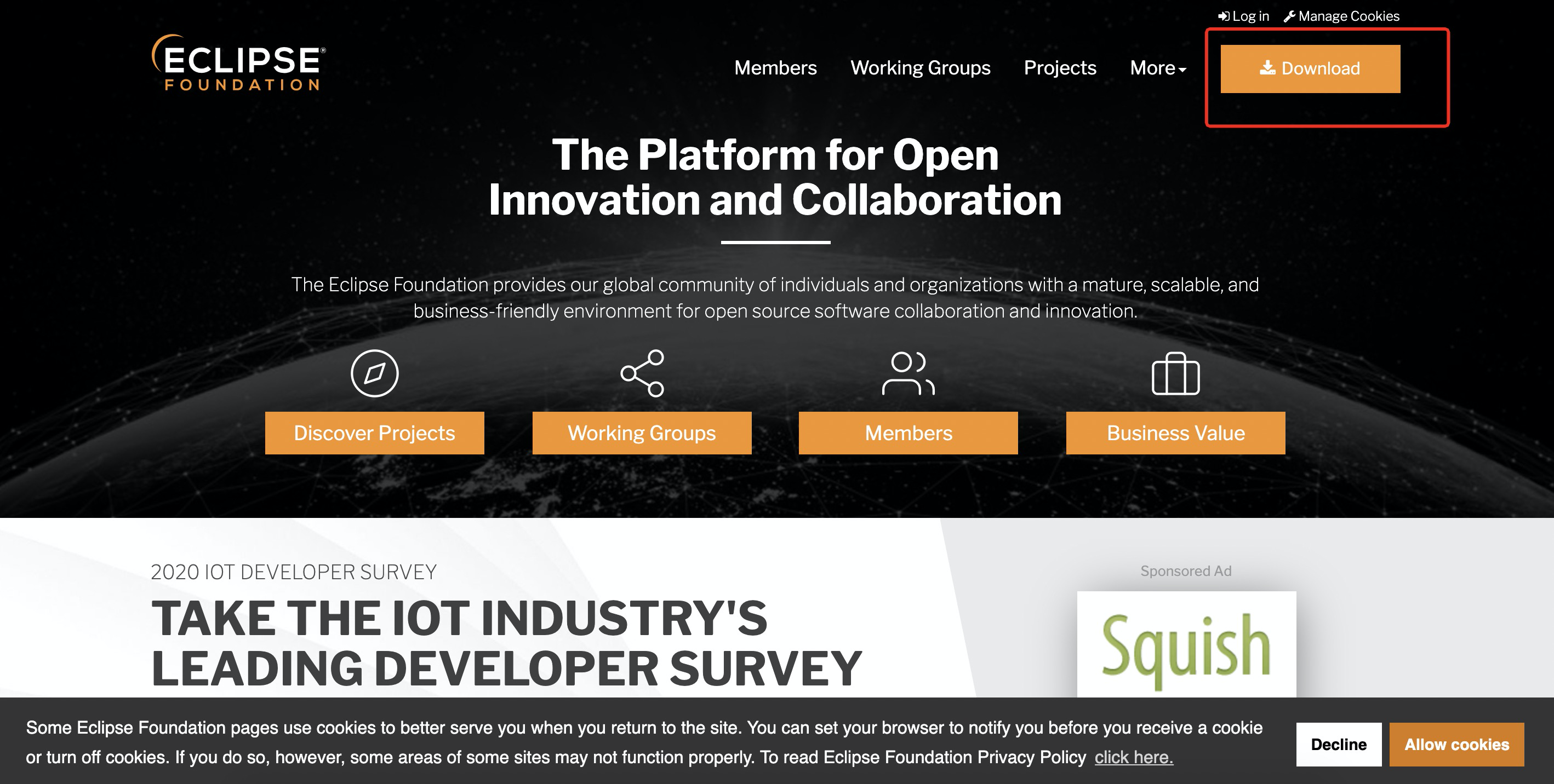 2.访问eclipse官方首页http://www.eclipse.org/home/index.php ,点击右上角“Download”按钮: