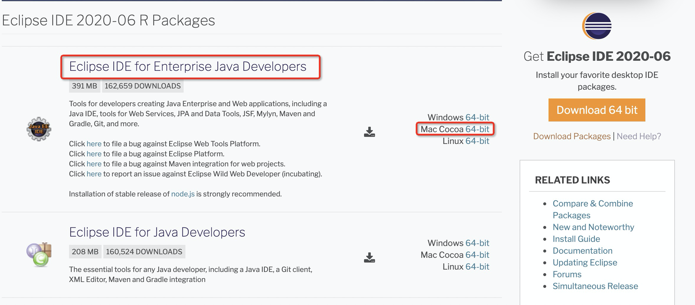 3. 这里列出了多种下载安装包,根据你的需求来选择,我这里选择的是“Eclipse IDE for Enterprise Java Developers”