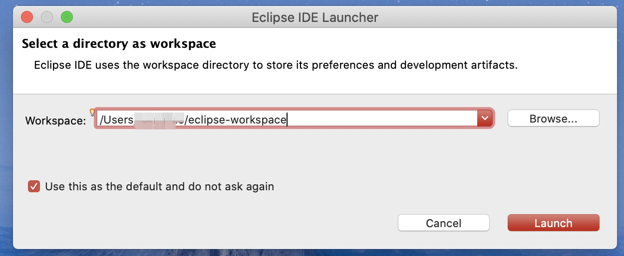 5.运行Eclipse,第一次运行时会让你设置工作空间workspace的位置,设置在你喜欢的位置即可。至此,已经成功安装了Eclipse。