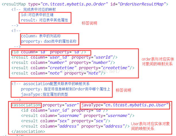 1) 使用resultMap将查询结果中的订单信息映射到Orders对象中。