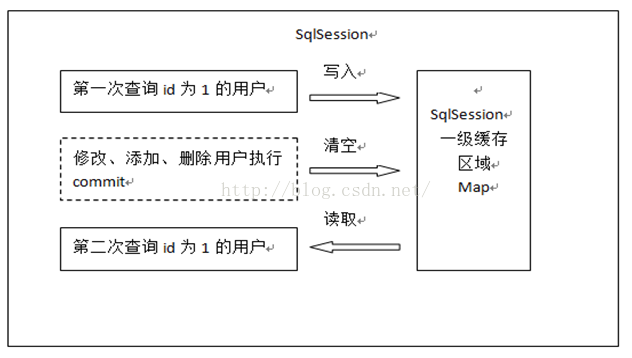 3. 如果sqlSession去执行commit操作(执行插入、更新、删除),清空SqlSession中的一级缓存,这样做的目的为了让缓存中存储的是最新的信息,避免脏读。