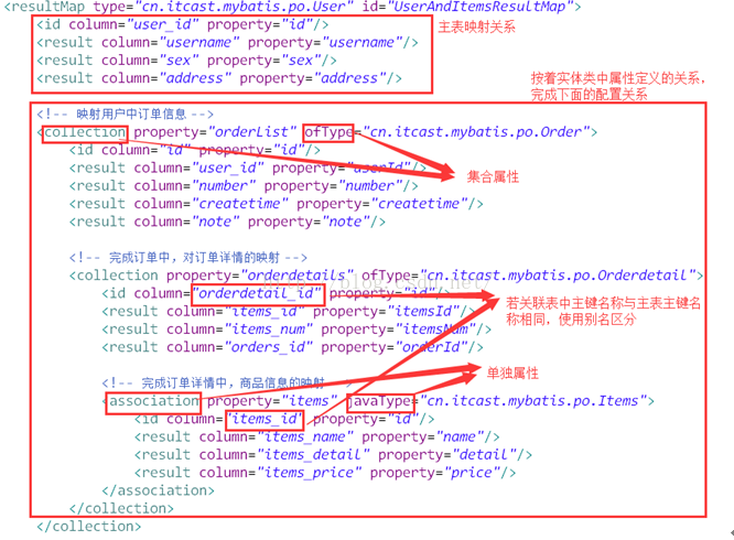 | 为了方便查询遍历关联信息可以使用collection将关联信息映射到list集合中 |