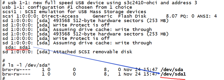 1.当我们每次插入u盘后,都会自动创键U盘的设备节点/dev/sda%d