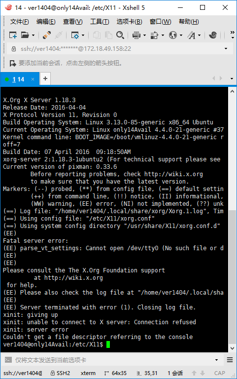 重装之后,root用户xshell不好使,但是xstart好使。