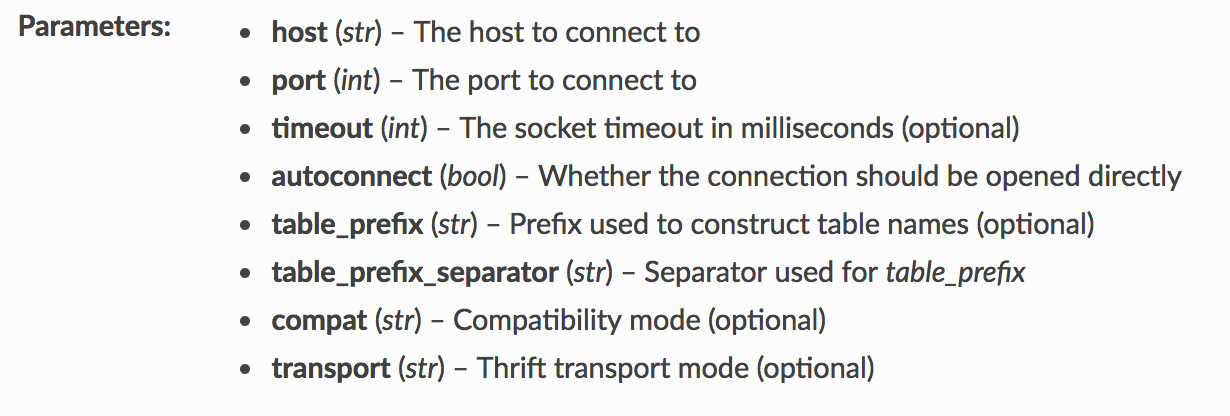 解决问题参考:https://happybase.readthedocs.io/en/stable/api.html#happybase.Connection