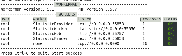 7、运行根目录下的php start.php start,可以看到