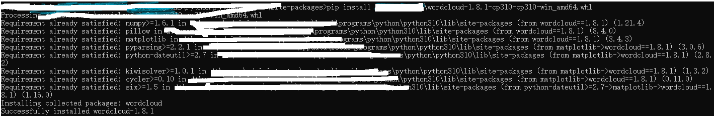 以上就是甜蜜大叔最近收集整理的关于Python(310/64bit)的wordcloud库安装失败后解决方法的心路历程的全部内容,更多相关Python(310/64bit)内容请搜索靠谱客的其他文章。