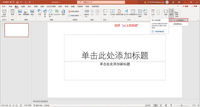 第3步:选择“pc上的音频”,随后在路径中将你所需的音频导入进去即可!
