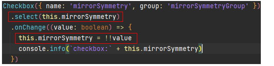 经过上述2中的分析,可以得到如下的解决方案:即,设置.select(!!this.mirrorSymmetry)