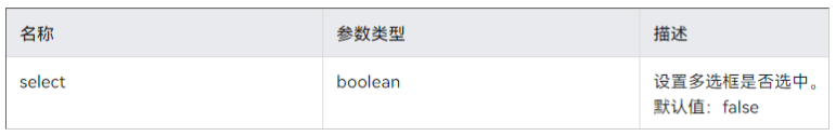 从原有的日志打印中可以看到打印出的值是0和1,而非true or false,日志中报错是在setSelect的时候,找到select属性的文档说明,该参数要求必须是布尔类型,推测是由于参数类型不一致导致的报错: