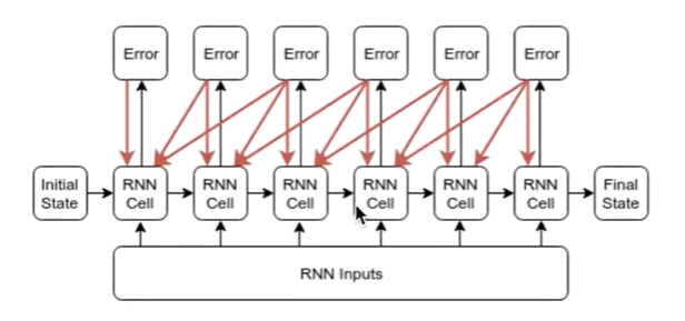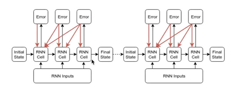 首先在普通或者tensorflow的RNN里,此参数都设置为3,意味着本cell的输出经过与label(即标准输出,也就是xt+1)比对后,得到的误差需要反向传播的步数,一直传播的前两个cell,只能更新到前两步的cell的参数。反向传播backpropagation自然不用说了,就是调节网络和更新参数的方法。