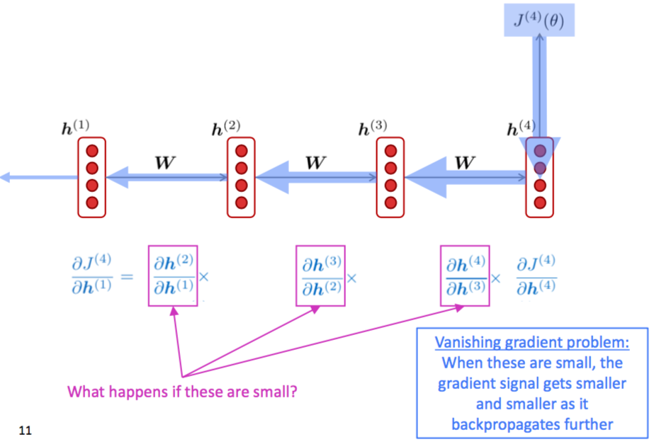 RNN梯度消失(图片来自CS224n的ppt)