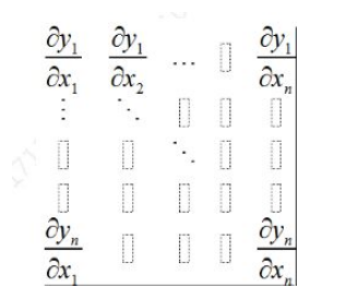 补充:雅克比矩阵 -- 函数的一阶偏导数以一定方式排列成的矩阵,举个例子: