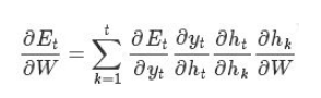 说明: E就是输出值y与真值之间的函数,而y又由ht线性变换然后过激活函数得到;ht由输入和之前的hk的函数得到,hk与药训练的参数W有函数关系