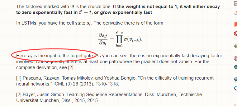 lstm只能缓解梯度消失,并不能完全解决;因为最新的状态单元可以是过去的一个线性组合,过去的信息传递到现在主要是由每个时间步的遗忘门参数连乘决定的;