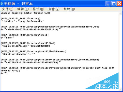 上面打开注册表进行修改或删除,比较麻烦,也比较危险,可以用另一个方法解决,就是自制一个注册表文件,然后将其注入到注册表中,问题就解决了。
