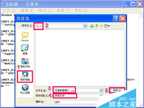3,自定义一个文件名:如“去掉新建窗口.reg”,注意后缀要为.reg类型。