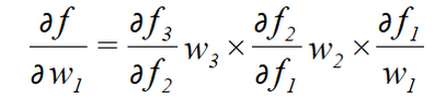 若要对于w1求梯度,根据链式求导法则,得到的解为: