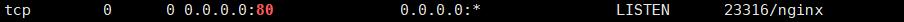 默认端口就是80,如果服务器是界面版,可以浏览器直接输入ip访问 0.0.0.0:80