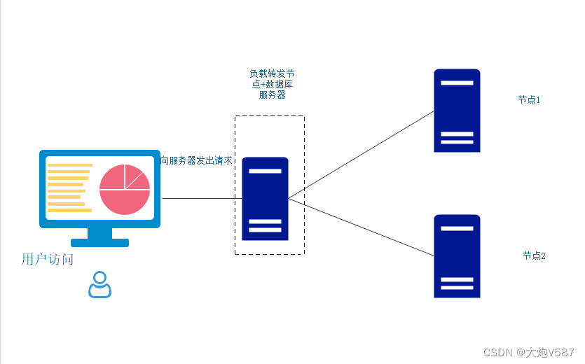 访问流程:用户访问负载均衡主节点-----根据算法分配到节点1或节点2
