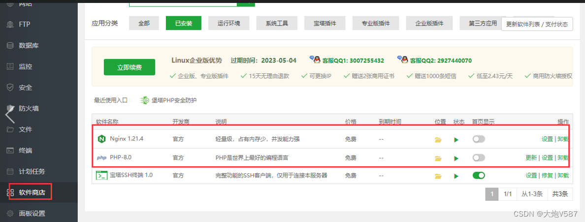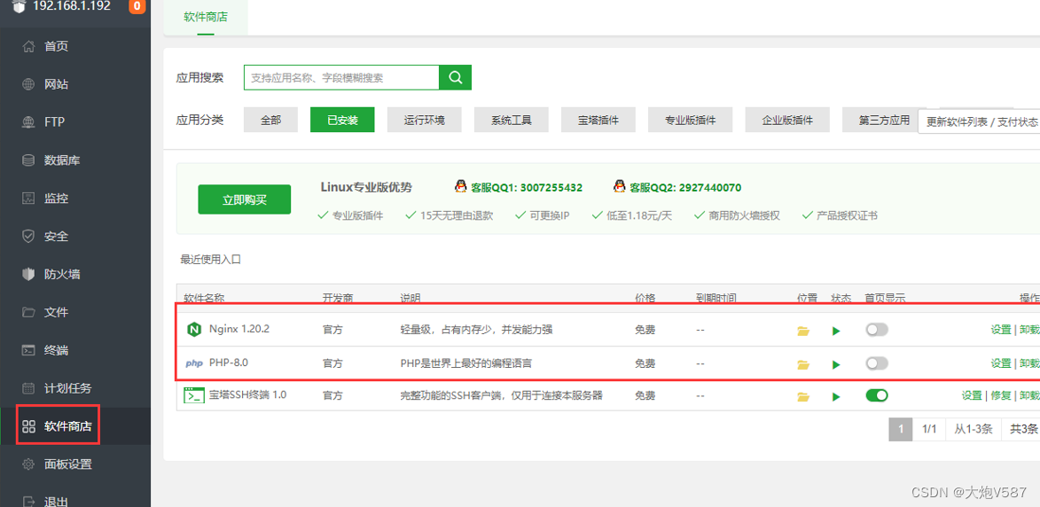 答:为了更好的提供服务,我们的主节点只做了转发的作用,符合Linux运维的规范,另外转发的服务器已经增加了数据库了(也可以将数据库独立安装到一台服务器上),就不要再处理网站上的其他业务了,转发节点尽量配置高一点