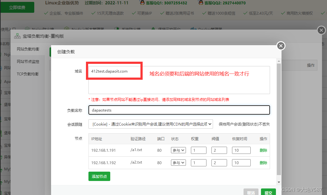 以上就是无辜黑夜最近收集整理的关于堡塔负载均衡使用教程的全部内容,更多相关堡塔负载均衡使用教程内容请搜索靠谱客的其他文章。