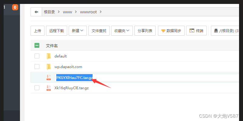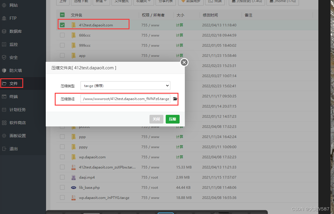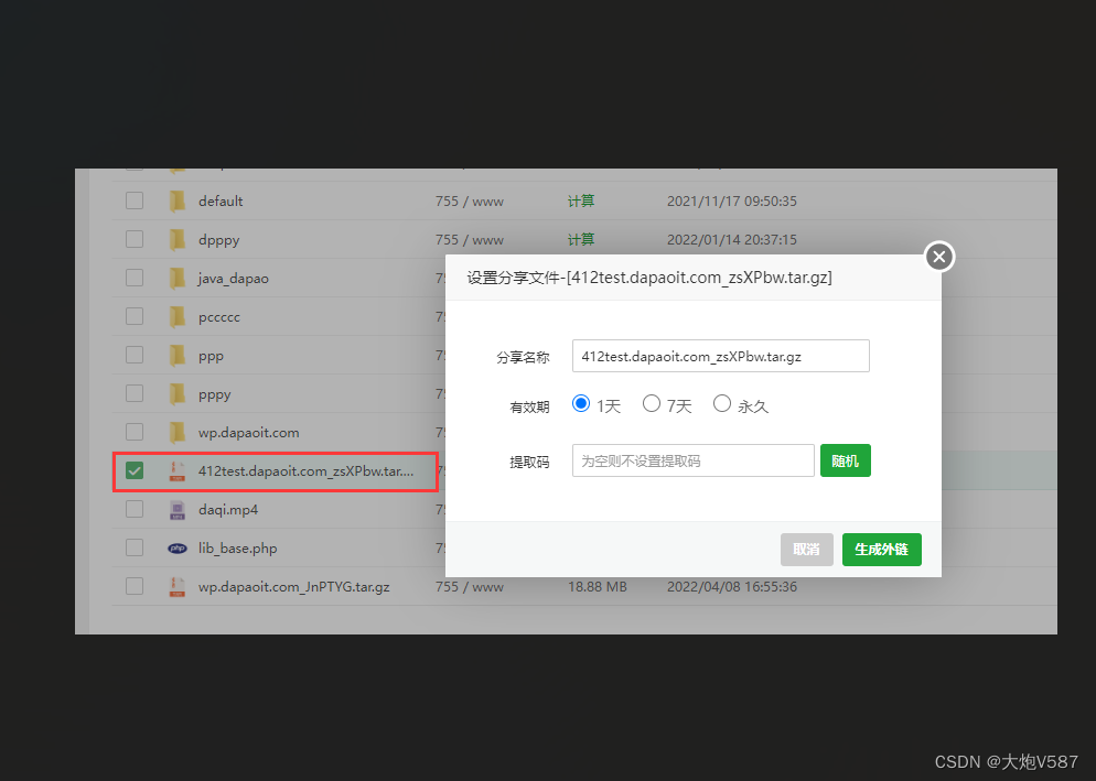 3、将主节点建站好的网站包打包,创建分享连接