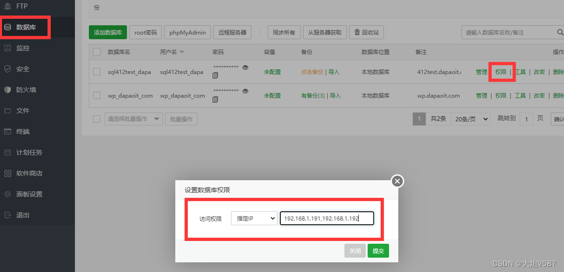 7、配置192.168.1.191和192.168.1.192这两台服务器对数据库的访问权限
