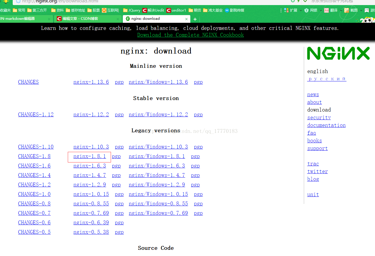 进入http://nginx.org/en/download.html 下载nginx1.8.0版本(当前最新稳定版本)。