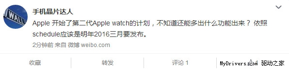 此外,他还表示Apple Watch 2的发布时间可能是2016年3月份。