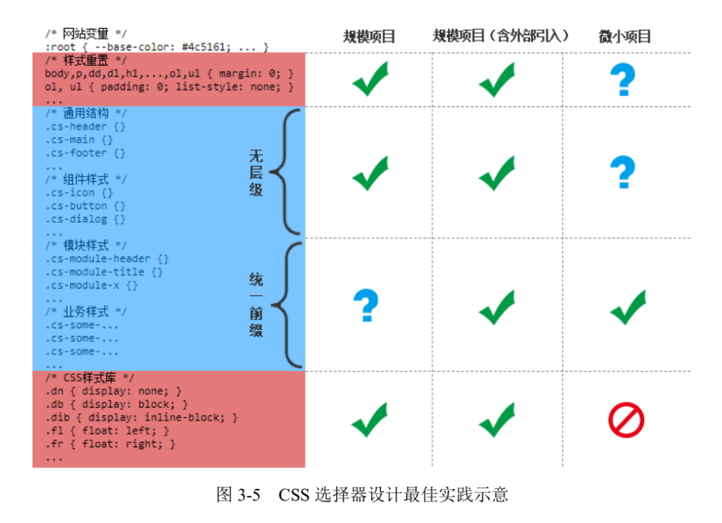 <div class="cs-box"> <figure class="cs-box-pic" <img src="./example.png" alt="示例图片"> <figcaption> <i> class="cs-box-pic-ico"</i>图片标题 </figcaption> </figure> </div> .cs-box {} .cs-box-pic {} .cs-box-pic-ico {}基本布局就使用 没有嵌套, 没有级联的类选择器 就可以了。这样的选择器 代码少,性能高, 拓展性强 ,维护成本低 没有任何不适用的理由;