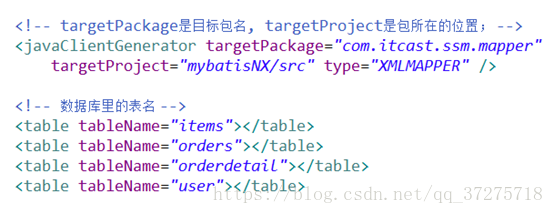 <javaClientGeneratortargetPackage="com.itcast.ssm.mapper"