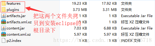 下载好之后解压,并把解压好的文件下名为features和plugins这两个文件拷贝到安装eclipse根目录下