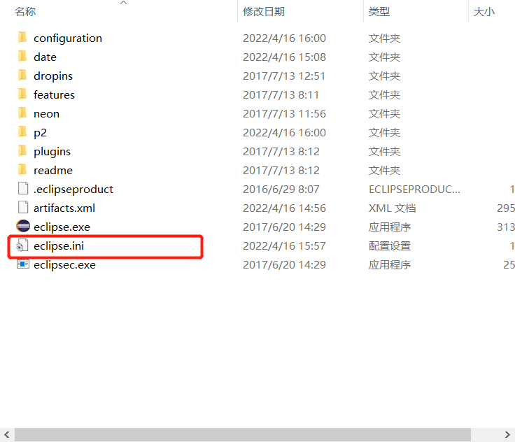 打开安装文件夹中的eclipse.ini文件(记事本格式)
