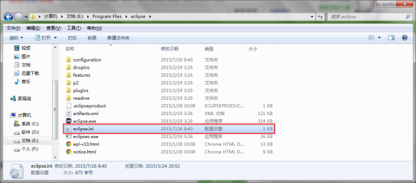 1、在eclipse安装目录找到eclipse.ini文件