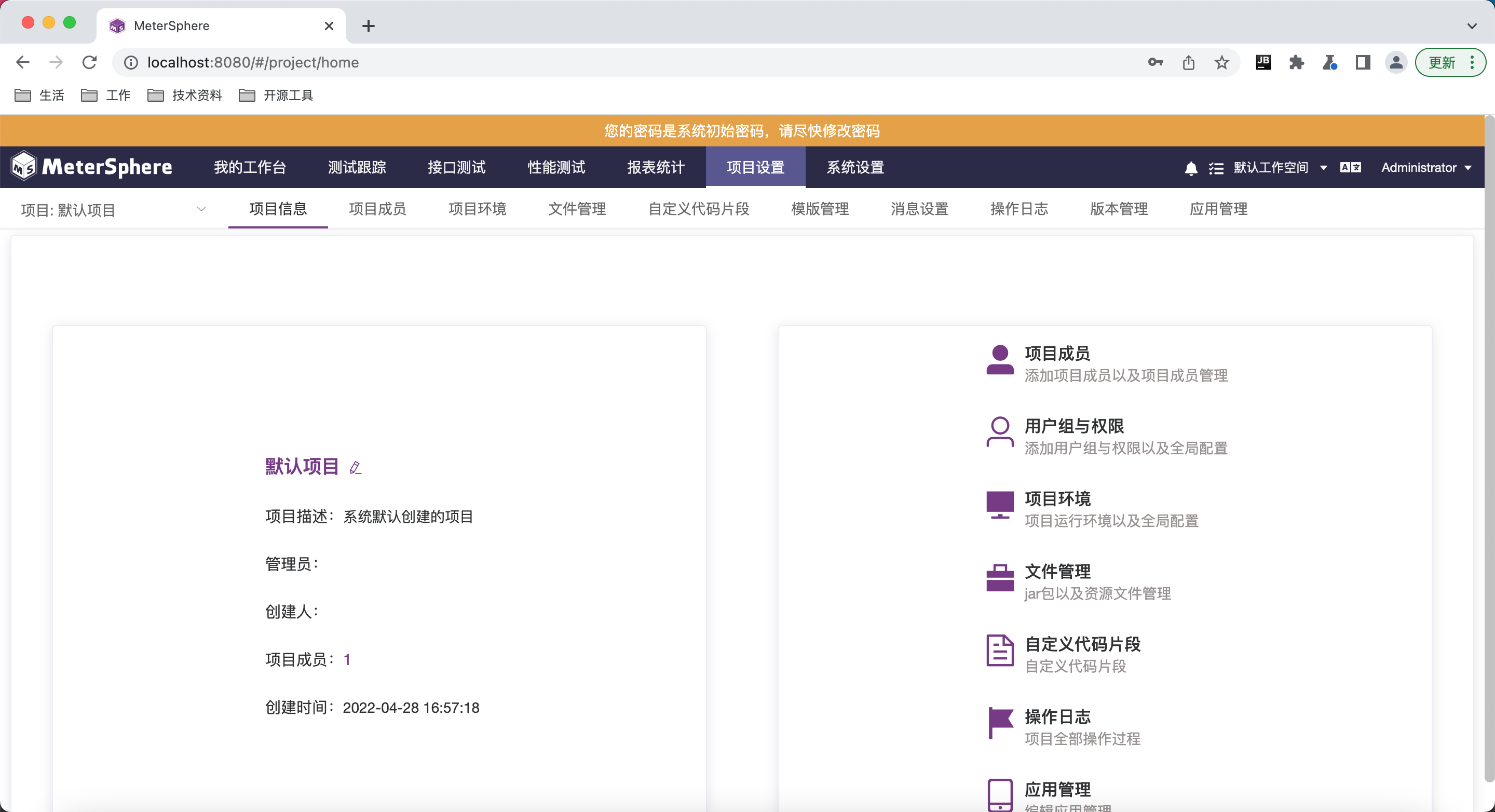 如果看到以下画面说明Metersphere搭建成功!