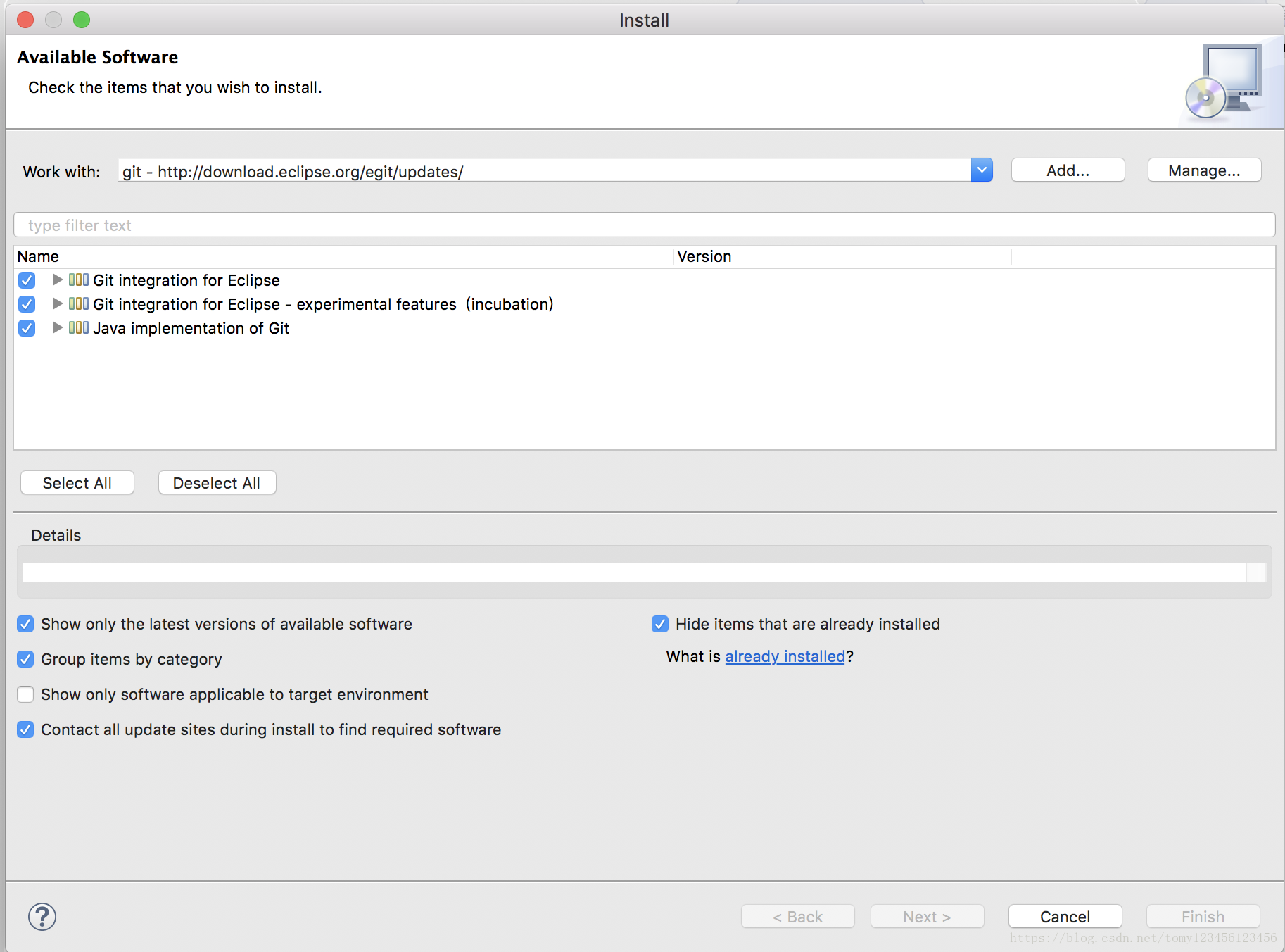 以上就是会撒娇星星最近收集整理的关于Mac下eclipse的git插件安装、配置和使用1. eclipse的git插件安装与配置2. 从git云端下载项目到本地3. 修改并提交自己的代码到云端4. 其它操作的全部内容,更多相关Mac下eclipse的git插件安装、配置和使用1.内容请搜索靠谱客的其他文章。