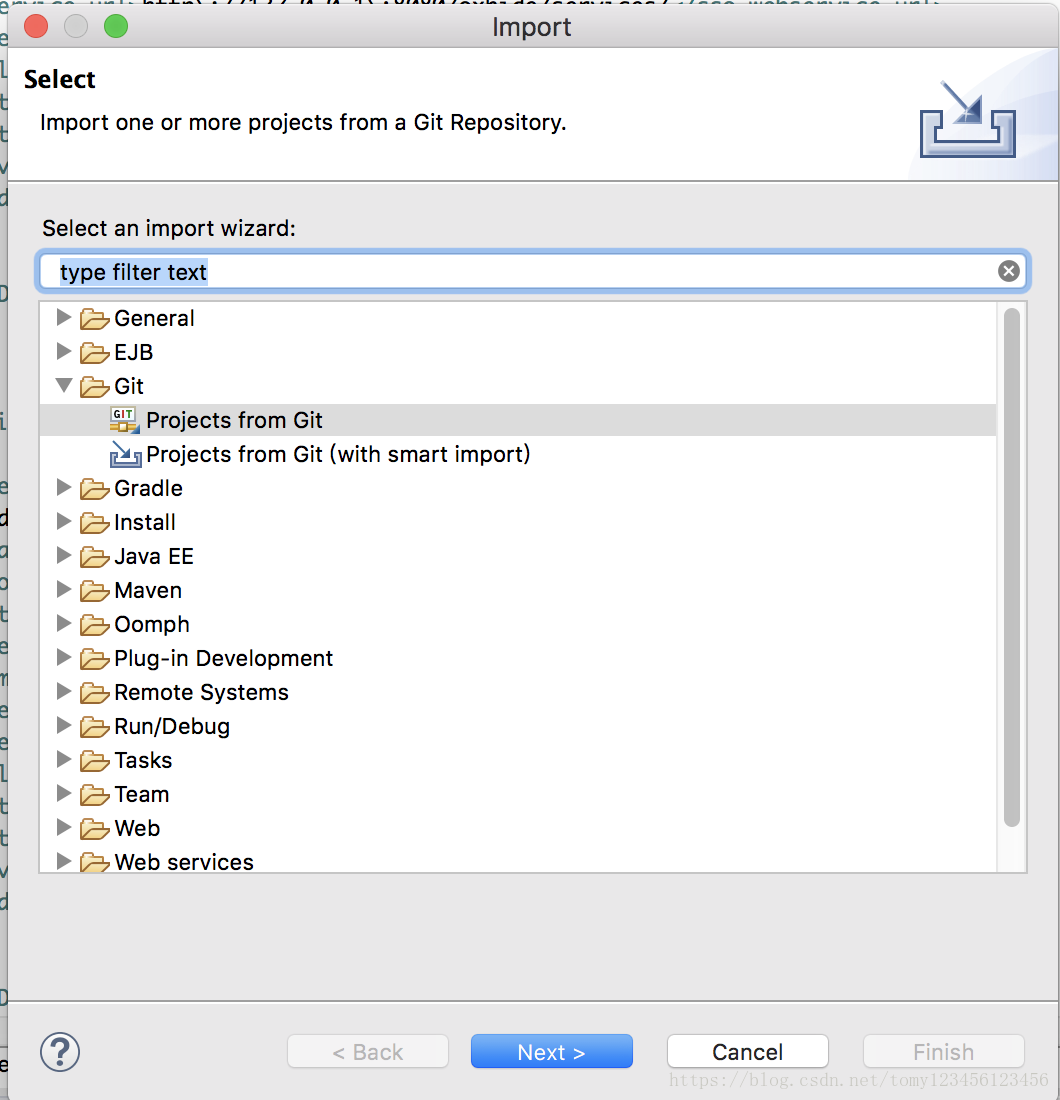 2.从Eclipse中选择File->import->Git->Projects from Git