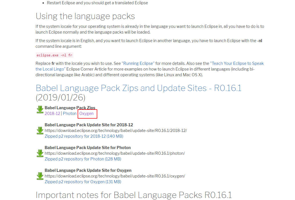1.打开如下网址 http://www.eclipse.org/babel/downloads.php,然后拉到下图中的位置,随便选择一个,我选的是Oxygen