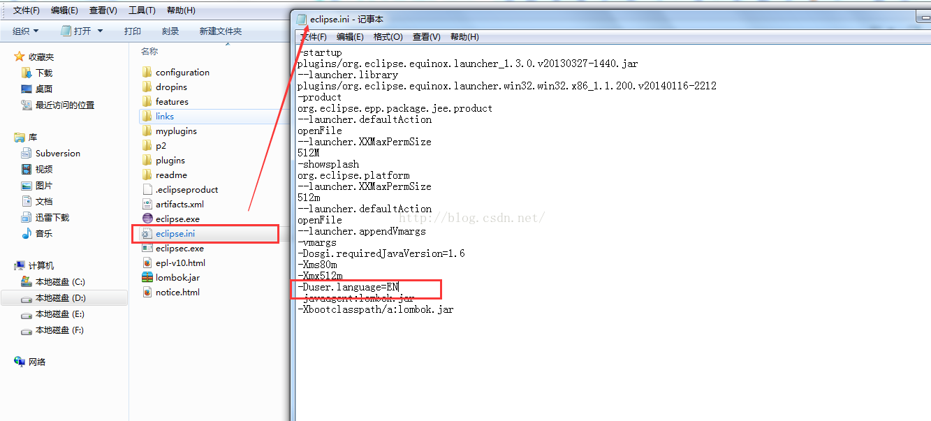 只需要将eclipse解压目录下的eclipse.ini文件中加入下面一句话就可以了(注意这句话应该单独存在一行):