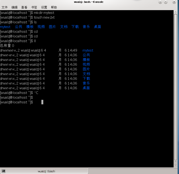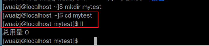 mkdir mytest 创建文件夹,名称为mytest