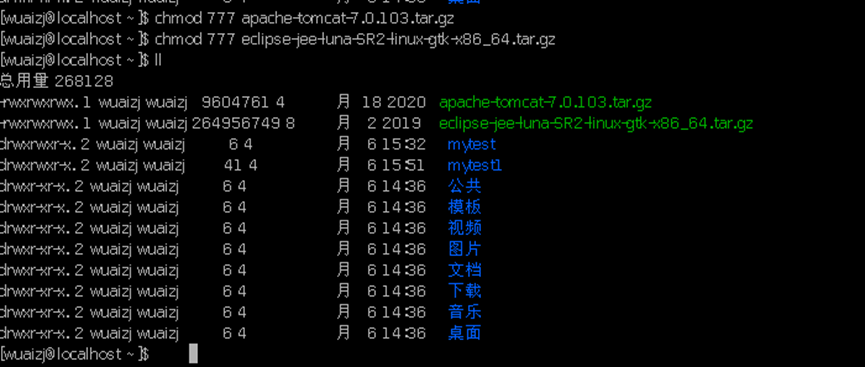 ll 得到当前目录中的子文件夹或者文件的详细信息