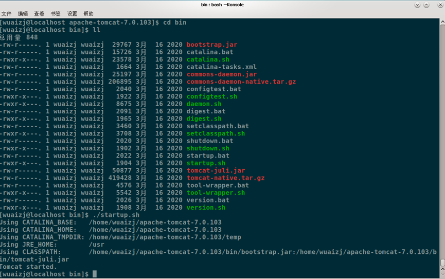 进入Tomact安装目录下的bin目录-------命令行./startup.sh