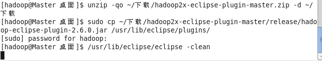 unzip -qo ~/下载/hadoop2x-eclipse-plugin-master.zip -d ~/下载 # 解压到 ~/下载 中