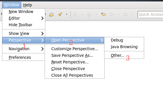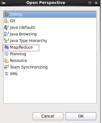 第二步:切换 Map/Reduce 开发视图,选择 Window 菜单下选择 Open Perspective -> Other(CentOS 是 Window -> Perspective -> Open Perspective -> Other),弹出一个窗体,从中选择 Map/Reduce 选项即可进行切换。